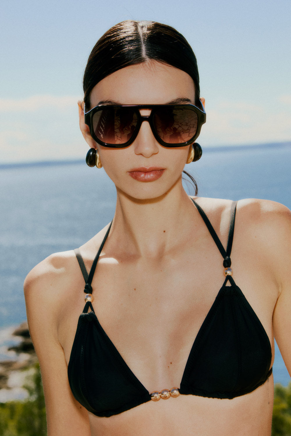 Solstice explores the intensity of light and the contrast between the sea and the infinite pool, reinventing style with defined cuts and vibrant colors that evoke freedom and sophistication. Golden accents and the power of black merge into emblematic pieces that highlight attitude and confidence.