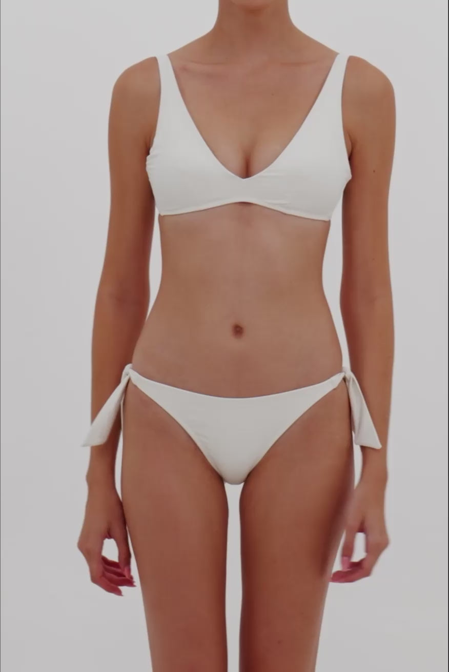Calzón de bikini con coletas laterales. Su tono offwhite aporta un aire natural a tu look de playa.